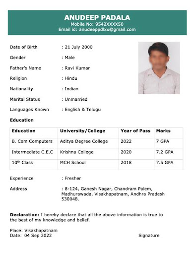 - The information that you need to include in your biodata format depends on the type of job that you are applying for. Generally, you should include your name, address, contact information, education, work history, and any other pertinent information.